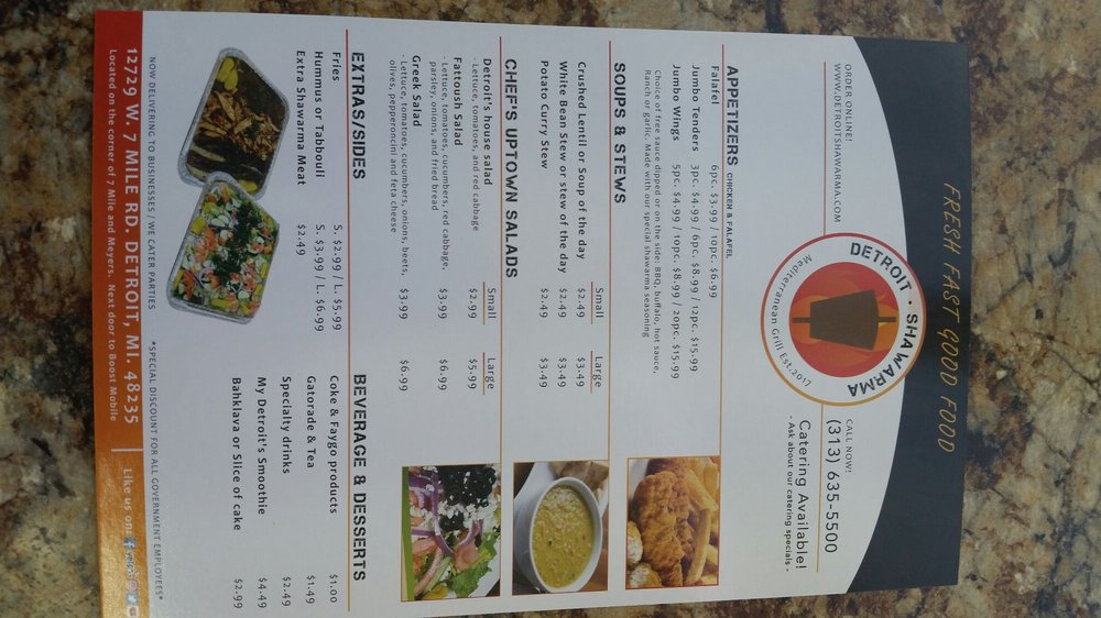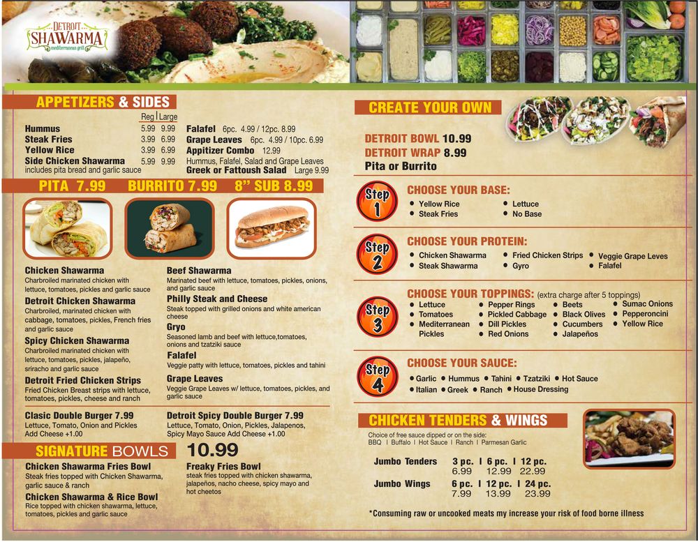 Welcome to Detroit Shawarma, where Mediterranean flavors merge seamlessly with a casual dining experience. Situated at 19420 Woodward Ave, this spot specializes in mouthwatering Middle Eastern sandwiches and more. With an inclusive menu, you can enjoy hearty options like the signature Chicken Shawarma & Rice Bowl or customize your own wrap, bowl, or burrito with your choice of toppings.